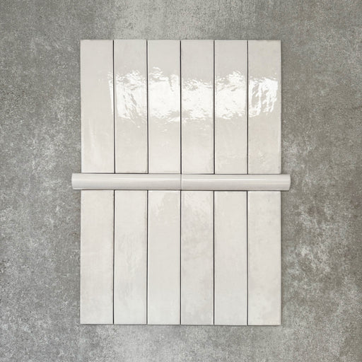 Nomad White Bullnose | Pencil Border Tiles | 3cm x 20cm