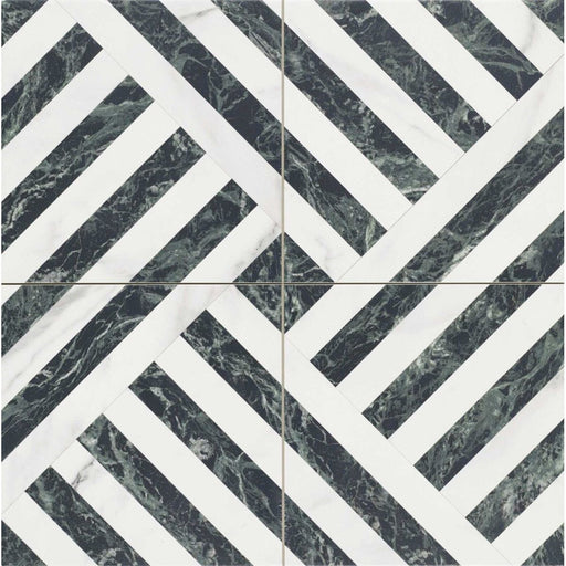 With its marble effect finish and classic colour palette, the bold geometric patterns are the perfect embodiment of Art Deco style. Each tile is pre scored which makes it easier to lay and gives the look of four individual tiles once grouted. We recommend using a grout joint of 1.5mm to match up with the pre scored lines on the tile. All the beauty of marble combined with the practicality of hard wearing porcelain, Our Art Deco collection is suitable for indoor and outdoor wall and floor spaces.