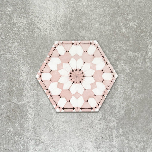 Hormuz Rose softens the boldness of Moroccan pattern tiles with a romantic pink and white palette. Its intricate starburst design and hexagon shape...