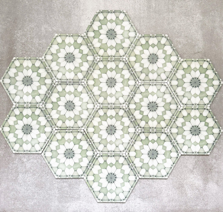 Medina Soft Green | Moroccan Style Hexagon | 18.7cm x 21.6cm