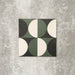 Abstract Circles reimagines classic geometry through a minimalist lens. This 20×20 cm porcelain tile combines green, black, and cream tones in a rhythmic pattern of intersecting semicircles, creating a bold yet balanced visual flow. Its clean, matt finish enhances the graphic contrast, giving any space a refined, modern aesthetic.